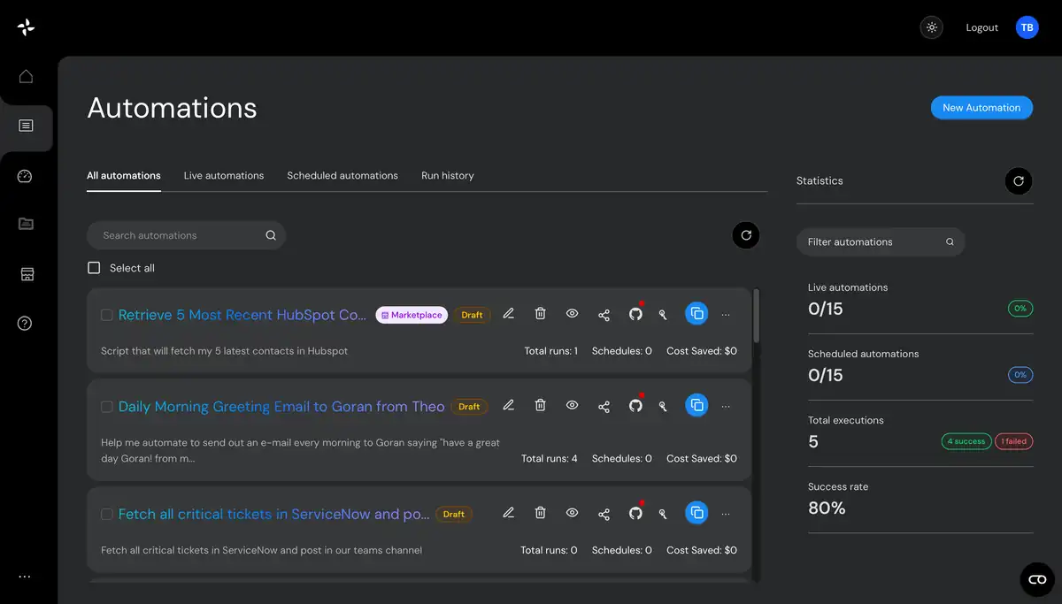 Turbotic is an AI-powered platform for designing, deploying, and operating micro-automations across business processes. It provides a centralized environment to orchestrate small, task-focused automations that collectively streamline workflows, reduce manual effort, and improve operational efficiency. The primary purpose of Turbotic is to help organizations identify automation opportunities, implement them quickly, and manage their performance at scale from a single interface.
