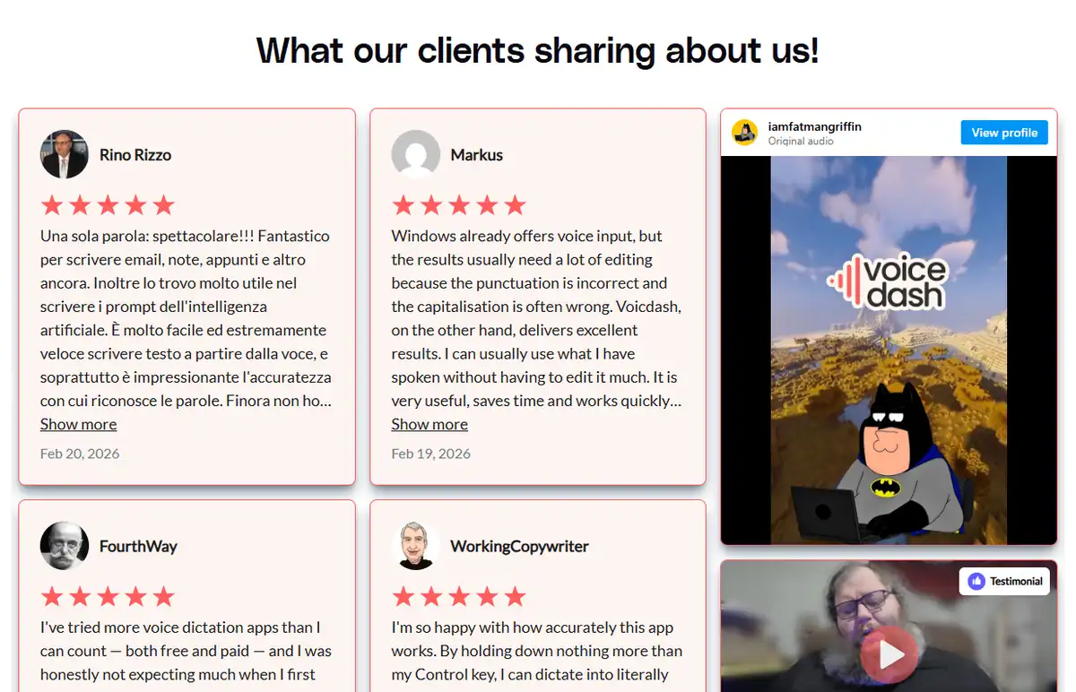 Voicedash is a cross-platform speech-to-text tool designed to convert natural speech into structured, polished writing in real time. Its primary purpose is to let you communicate at the speed of thought by dictating instead of typing, while automatically producing clean, professional text suitable for emails, documents, and messages. By running system-wide, it works alongside your existing applications without requiring workflow changes.