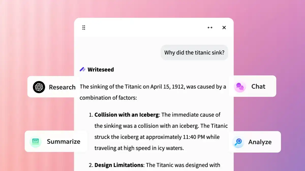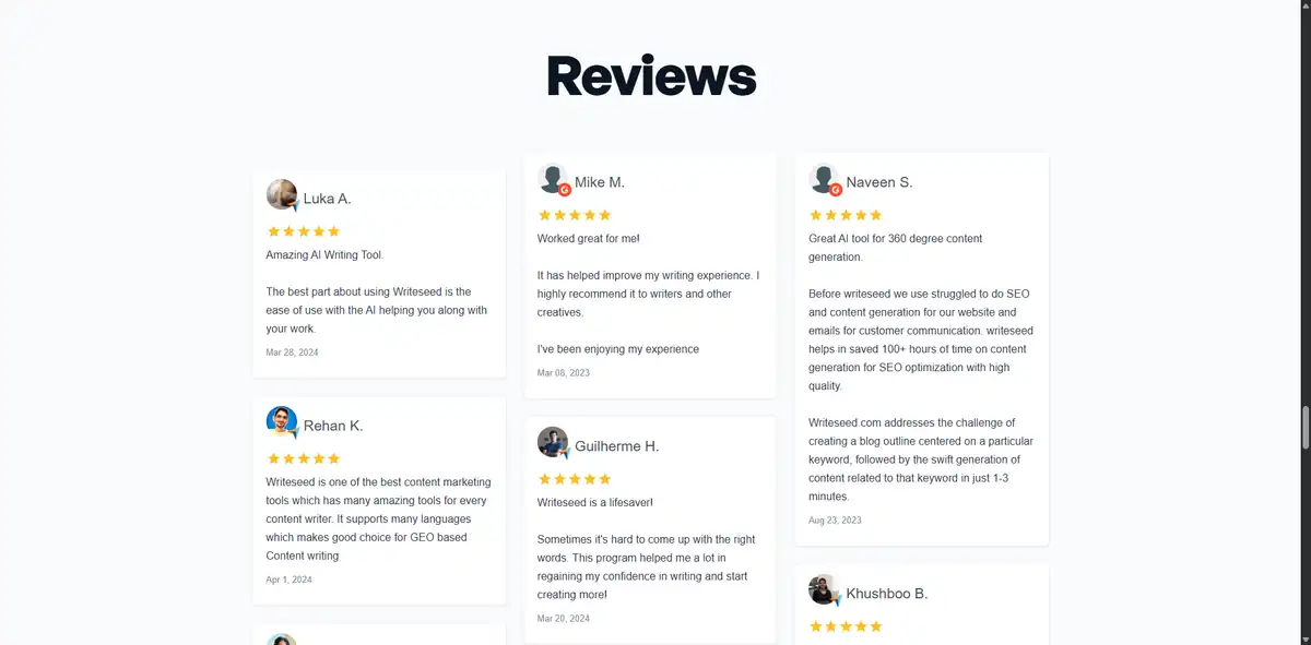 Writeseed is an AI-powered writing tool that generates SEO-optimized blog posts, website copy, and related content from user inputs and topic guidelines.