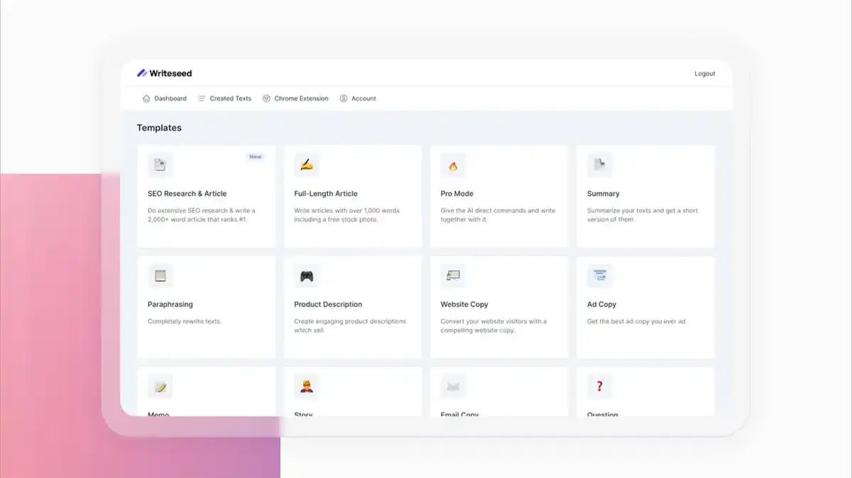 Key features include AI-driven blog post generation, SEO-focused content suggestions, and tools for crafting product descriptions, landing pages, social media posts, and email copy. Writeseed offers keyword integration, meta description support, and headline optimization to improve search performance and click-through rates. The interface typically allows users to specify tone, language, and content length, enabling tailored outputs that match brand voice and audience expectations. Many workflows are template-based, allowing users to start from proven content structures and refine them rather than writing from scratch.